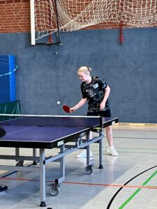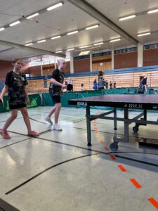 Nun waren Marlene und Lea im oberen Paarkreuz gefragt, wo allerdings starke Gegnerinnen auf sie warteten. Für ihre ersten Einzel in dieser Saison machten sie es nicht schlecht, und gerade in Leas Spiel hätte auch gut ein Satzgewinn für sie herausspringen können, doch leider unterlagen sie auch dort jeweils in drei Sätzen, sodass aus Sicht des TuS 0:4 stand.