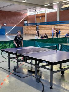 Los ging es auch bei unseren Mädchen traditionell mit den Doppeln, wobei es aufgrund unserer Aufstellung zu lediglich einem Doppel kam. Dort spielten Lea und Marlene zum ersten Mal überhaupt offiziell Doppel, denn beide hatten bisher lediglich im Training zusammen Doppel gespielt. Da ihre Gegnerinnen bereits Doppelerfahrung hatten, kamen sie leider nur zu wenigen Chancen, um selbst Punkte zu machen. Daher kam am Ende auch die erwartbare Niederlage, doch gerade auf die Leistung im letzten Satz, der nur knapp an die Gastgeber ging, kann man aufbauen.